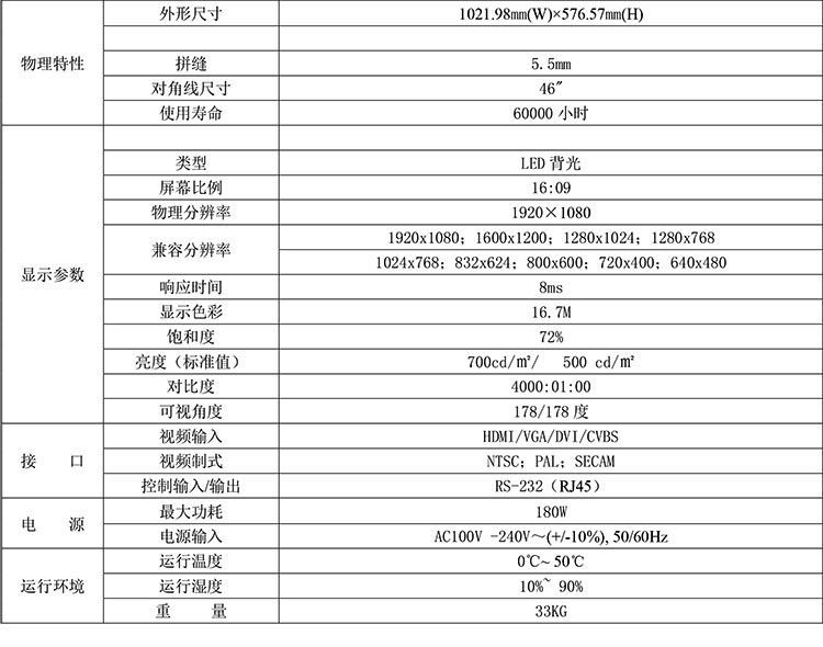 • 商品名稱(chēng):三星46寸3.5mm拼接屏